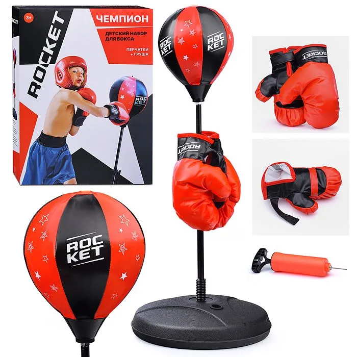 Этот набор включает боксёрскую грушу, установленную на регулируемой стойке высотой от 70 до 105 см, что позволяет подстраивать её под рост ребёнка. Груша сшита вручную и оснащена резиновым надувным баллоном, её максимальный диаметр составляет 18 см, что делает её удобной для детских ударов. Массивное основание диаметром 34 см обеспечивает устойчивость, а возможность заполнить его водой или песком добавляет дополнительную стабильность. В комплект входят перчатки для защиты рук и насос для надувания груши. Набор изготовлен из пластмассы, металла и полимерных материалов, что гарантирует долговечность и безопасность. Упаковка в виде коробки удобна для хранения и транспортировки.