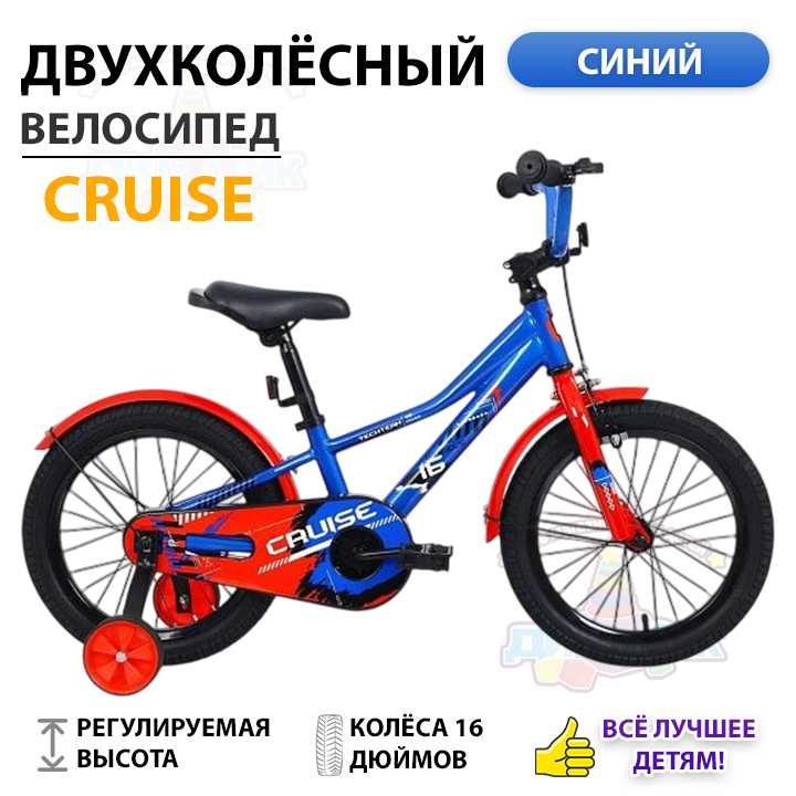 Tech Team Cruise 16" blue (сталь) — детский велосипед, предназначенный для детей от 5 до 7 лет и ростом от 100 до 125 см.