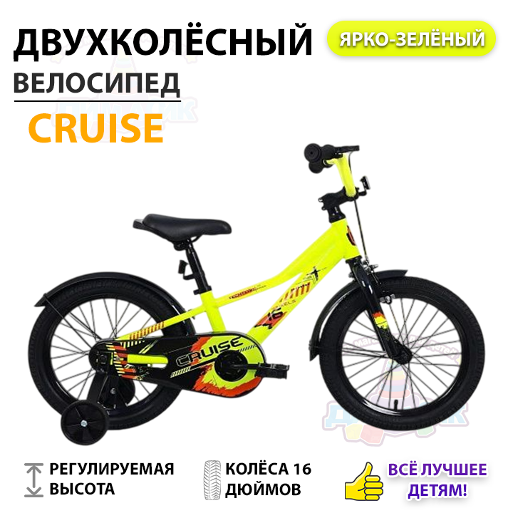 Tech Team Cruise 16" neon green (сталь) — детский велосипед, предназначенный для детей от 5 до 7 лет и ростом от 100 до 125 см.