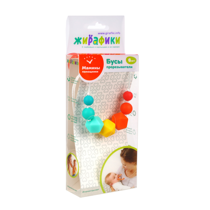 Бусы прорезыватели "Конфетки" сделаны из безопасного пищевого силикона. Они достаточно мягкие и очень приятные на ощупь. Бусины можно жевать и грызть - они не деформируются. В период прорезывания молочных зубов малыш особенно нуждается в массаже десен. Бусы-прорезыватели обеспечивают легкий и щадящий массаж десен, снимают зуд и значительно облегчают сам процесс прорезывания. Поскольку бусы надежно закреплены на шее у мамы, можно не опасаться, что малыш их выронит и они испачкаются. Яркие бусины разной формы очень нравятся малышам и надолго привлекают их внимание.