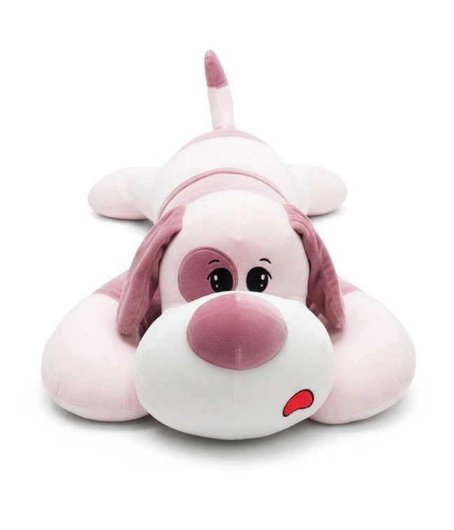 Мягкая игрушка «Собака обнимашка» 60 см – большая плюшевая собачка-подушка, созданная специально для объятий и комфортного сна. Игрушка выполнена в нежных розово-белых тонах: у собаки вытянутое мягкое туловище, крупная мордашка с большим носом, длинные ушки и лапки, на которые удобно опираться.