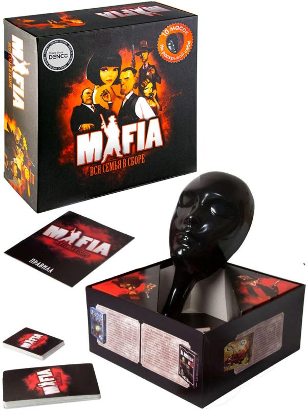 В этой коробке собраны, кажется, все роли, какие только бывали в разных вариантах Мафии. А ещё тут есть маски, которые точно не дадут подглядеть ночью. В остальном играете как обычно: днём мирные жители подозревают друг в друге мафию, ночью мафия избавляется от какого-то из мирных жителей. Используйте способности своего персонажа, чтобы повлиять на игру, и будьте осторожны: в игре есть и такие люди, кому вообще любая смерть выгодна.