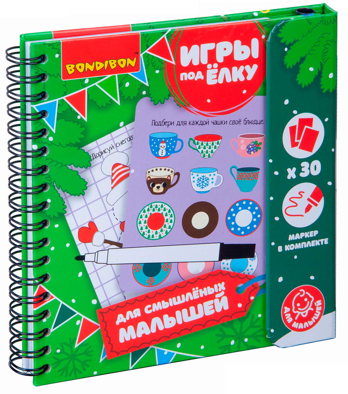 Ламинированные страницы позволяют многократно рисовать на карточках маркером, а потом с легкостью стирать! Вместе с замечательными мини-играми под ёлку от BONDIBON вы прекрасно проведете свой досуг в новогодние праздники! Красочные и интересные, они помогут провести время празднично и с пользой.